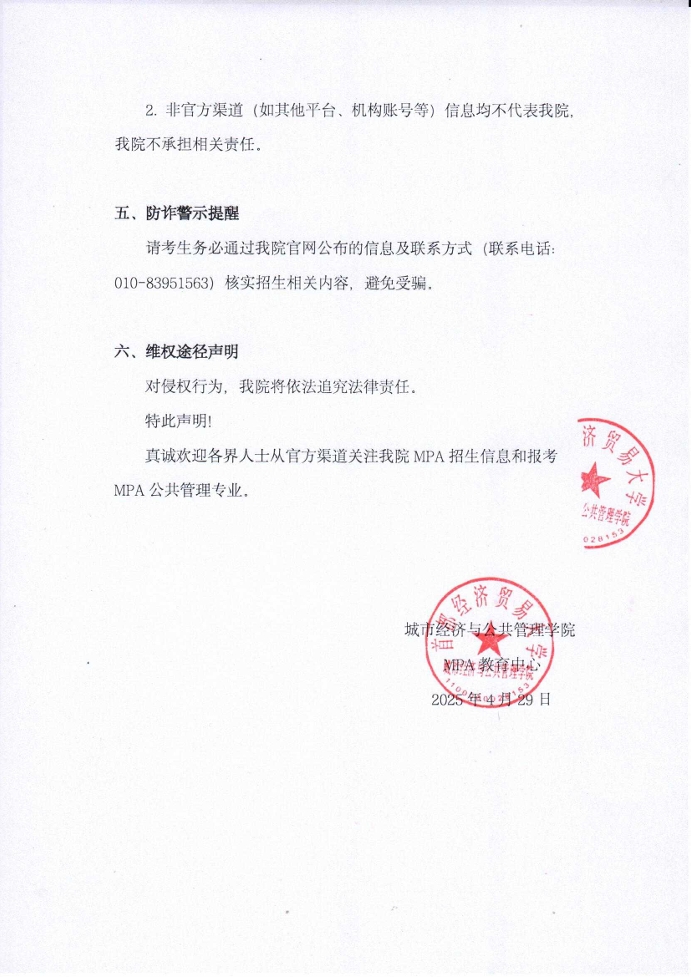 日本三级 作为我校MPA教育管理的唯一合法机构,招生及培养按学校规定进行,从未授权任何第三方机构代理招生或联合办学,任何以合作名义开展的招生活动均与日本三级 无关。
