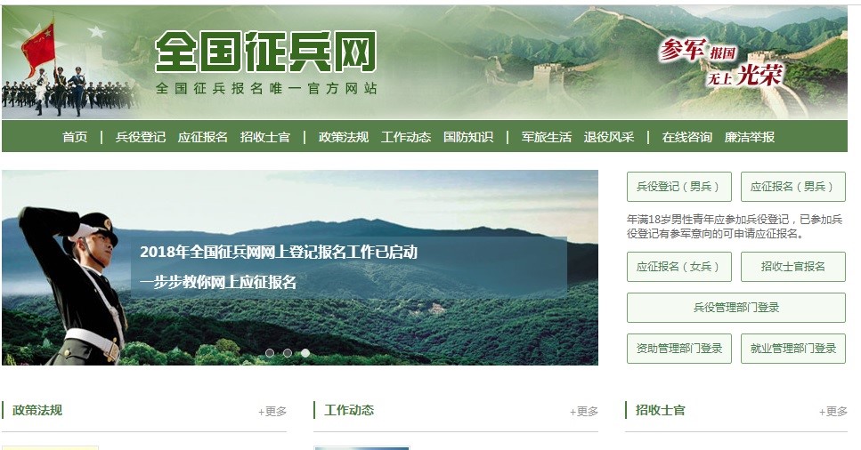 1.进入全国征兵网://www.gfbzb.gov.cn/。点击右上方“兵役登记”