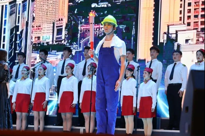 七点,轮到同学们上场了!舞台上,大家声情并茂地表演着:合唱队同学们在刘皓凝同学的指挥下放声歌唱;方天予、李建富、叶夏尔三位同学进行了声情并茂的朗诵表演;两侧是舞蹈演员精彩的伴舞。在这短短的几分钟内,所有人都尽自己最大的努力做到了最好。台上,精彩纷呈;台下,掌声雷动。