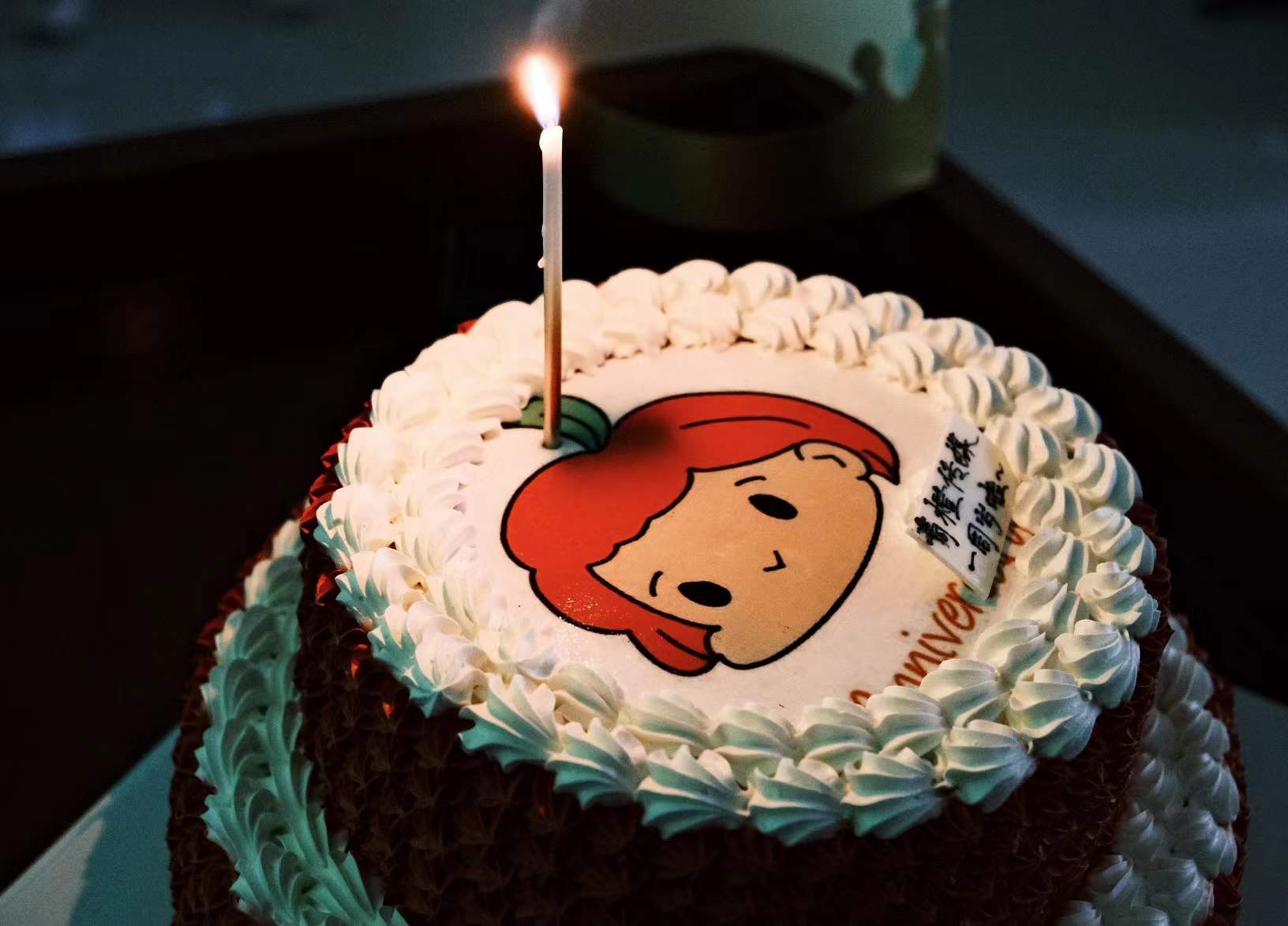 在青橙传媒成立一周年之际,工作人员还为大家准备了一个大大的蛋糕,蛋糕上有我们自己的“橙橙”,伴随着同学们的生日歌和吹灭的蜡烛,青橙传媒正式一岁啦!希望大家在日后的工作中继续努力,继续快乐!