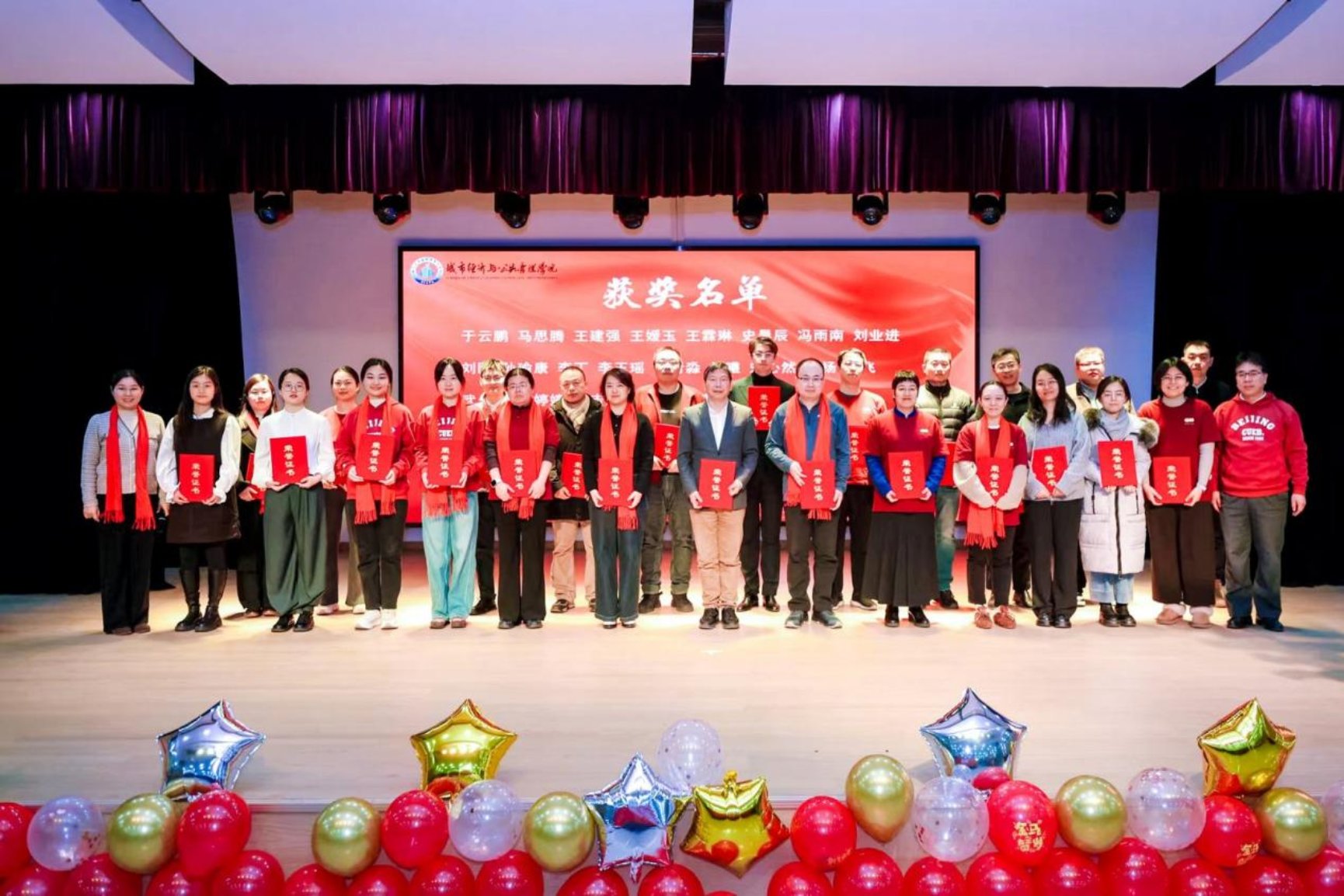 简洁庄重的表彰环节穿插其间。学院党委副书记、院长麻宝斌,副院长邬晓霞为“教学、科研一马当先”奖获得者颁奖,致敬在三尺讲台与科研征途上深耕不辍的教师们,肯定他们在教学创新与学术攻坚中的突出贡献,现场响起阵阵掌声。