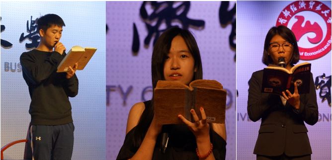 活动以专业评委打分与观众投票相结合的方式产生最终奖项,所有结果均在现场公布。专业评委打分占最终成绩的80%,现场投票占最终成绩的20%。读书分享会正式开始,2017级公共管理4班朱东旭同学带来的《草叶集》带我们回到了19世纪长满芳草、生机盎然、迸发着爱与浪漫的美国大地;2017级公共管理3班李哩莉同学与大家分享了法国批判现实主义巨匠巴尔扎克的《人间喜剧》使我们仿佛置身于法国大革命时期,时代与金钱的洪流之中;2017级公共管理5班季莹同学通过戴尔·卡耐基的《人性的弱点》为我们解释了疲劳与放松的本质,和承认错误的力量。