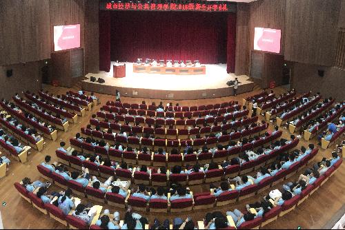 在奏唱国歌,介绍与会领导、老师之后,城市学院院长张国山致辞,他提出本科生应学习知识,硕士生应把握理论,博士生应运用方法,共同努力,一起进步。望新生要勤勉学习,不虚度光阴,将“靡不有初,鲜克有终”牢记于心,做任何事情善始善终,努力追求科学的真理,成为高质量的管理类专业人才。