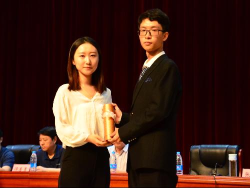 在2018级公共管理5班本科生代表刘函洋接受在校生礼物后,他作为新生代表进行了精彩发言。他不仅表达初入大学校园的喜悦之情以及对大学生活的美好向往,也提出了作为第一批迈进大学校园的零零后,将表现出新的色彩,新的开端,提升学业水平,为将来打下坚实基础,让学院和学校为他们感到自豪。