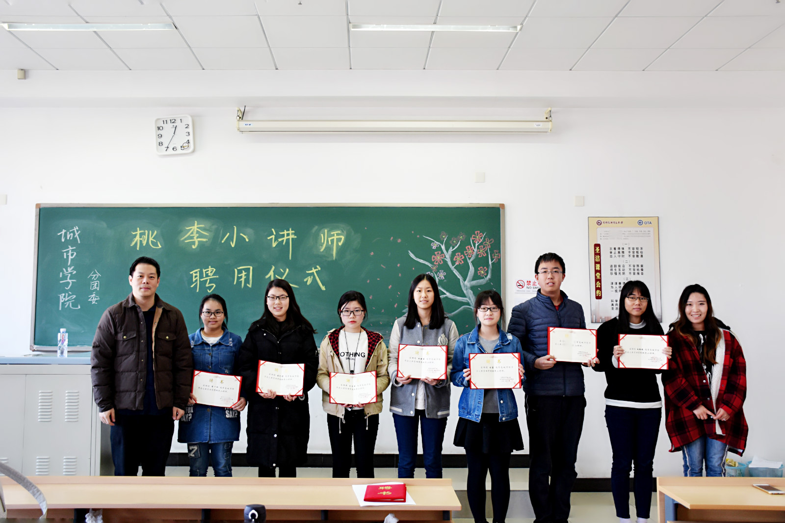 3月31日中午,日本三级 在博学楼302教室举行了“桃李小讲师”的聘用仪式。学院党委副书记杨曦、分团委书记张云雪以及“小讲师”们参加了此次活动。