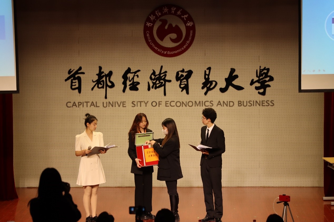 袁欣雨和张灏忱两位同学担任决赛主持。原MaxMara中华区人力资源经理高慧、北京华联商厦股份有限公司总部人力资源经理杨懿、就业指导中心签约服务负责老师田霖鹏和城市学院专职辅导员冯雨南担任决赛评委。城市学院兼职辅导员金丽娜也出席了此次决赛。经过简历筛选和线上笔试,共有十位选手入围。