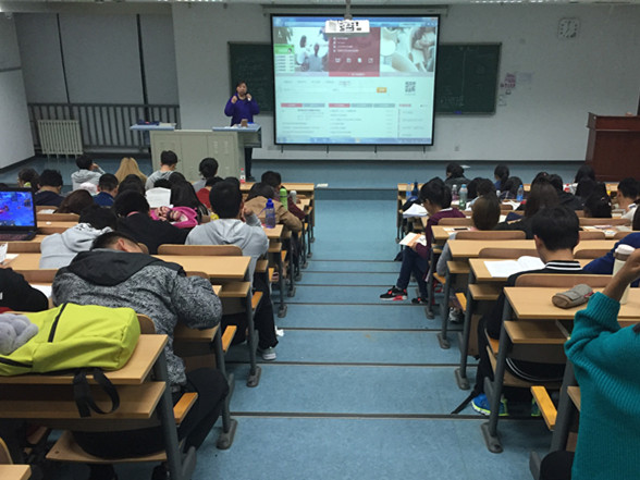 首先,图书馆霍可从我校图书馆的藏书状况、场馆分布、借阅系统和网上建设四个方面系统全面地向16级新生介绍了图书馆系统的各方面情况。霍可还通过幻灯片结合丰富的图片给大家讲解了如何借书、如何选座、网上检索等一系列极具实用性的能力技巧。她鼓励在场的同学们通过读书提高自我,使自己的大学生活丰富多彩而更有意义。