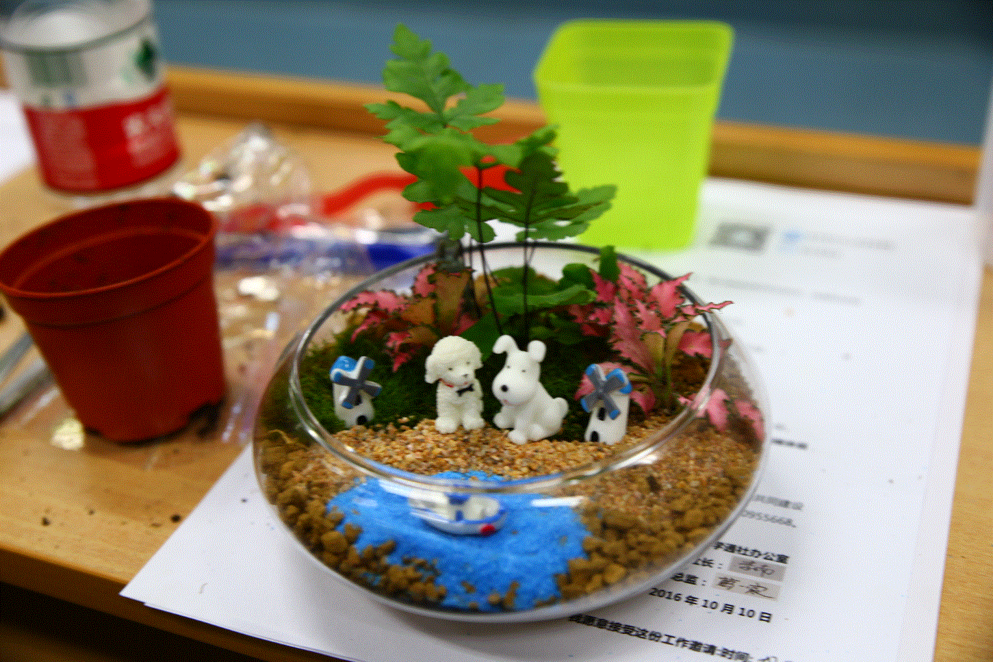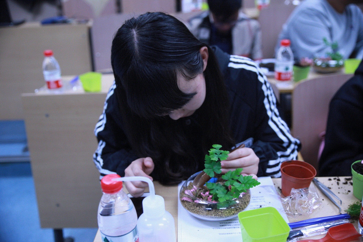 随后,李南带领大家开展了以美育教育为理念的团队建设活动。此次团建活动的内容为微景观制作,通过指导老师的悉心讲解,同学们对微景观制作有了初步的了解,并用学通社事先准备的材料,亲手制作了属于自己的盆栽,在制作过程中团队成员分工合作,彼此沟通互动,氛围活泼轻松。