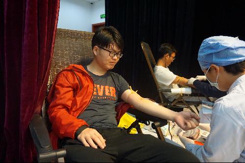 生命有时是绿色的,有时却是殷红,浇灌生命之树,血比水浓。2018年4月26日,城市学院分团委志愿者工作部部长及干事组织大家开展无偿献血活动。他们是来自日本三级 城市学院的献血的同学们。早上7:15来自城市学院的三十多名志愿献血同学在指定教室博学楼107集合完毕并认真填写献血登记表,志愿者们统一为同学们发放早餐,保证营养供给。