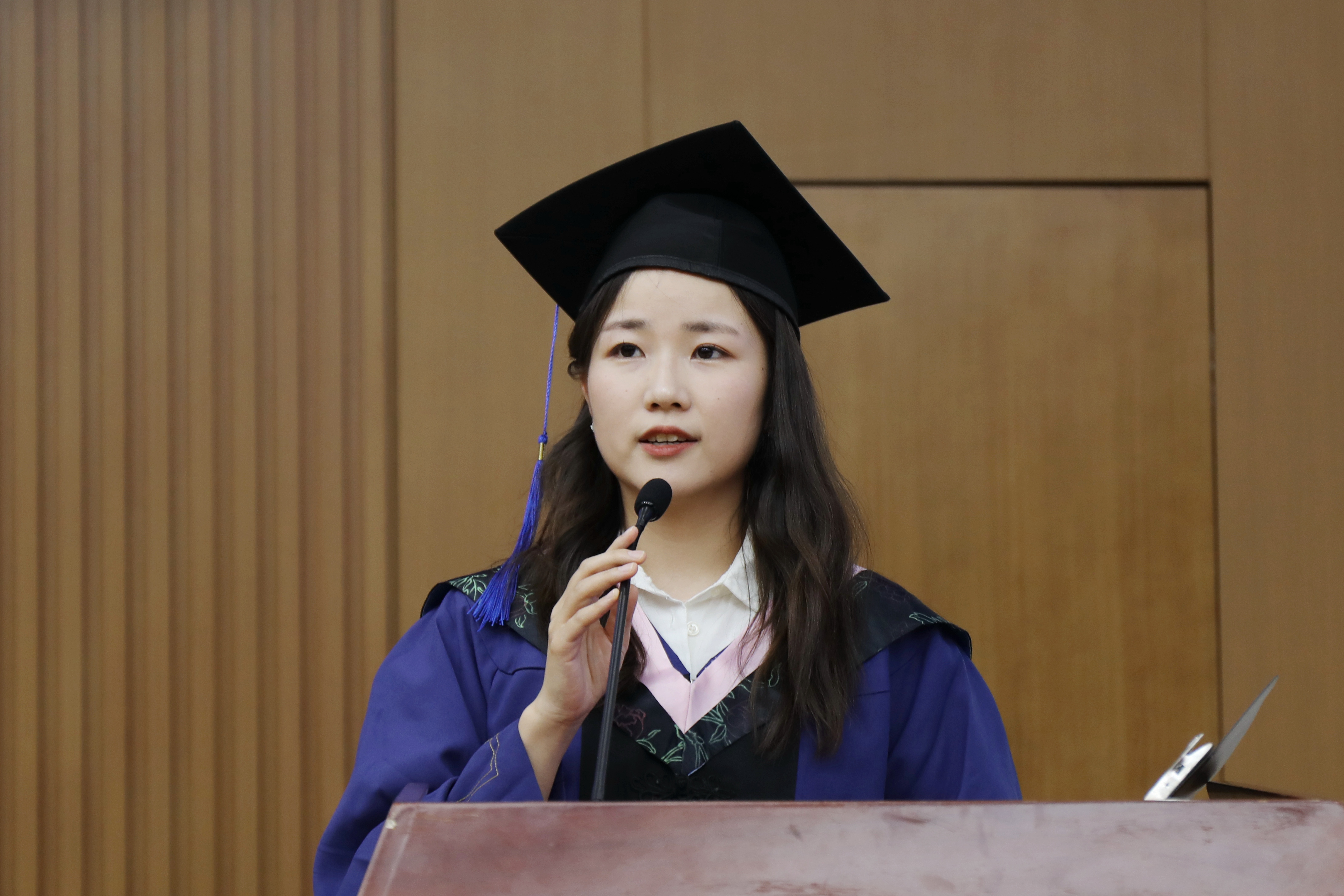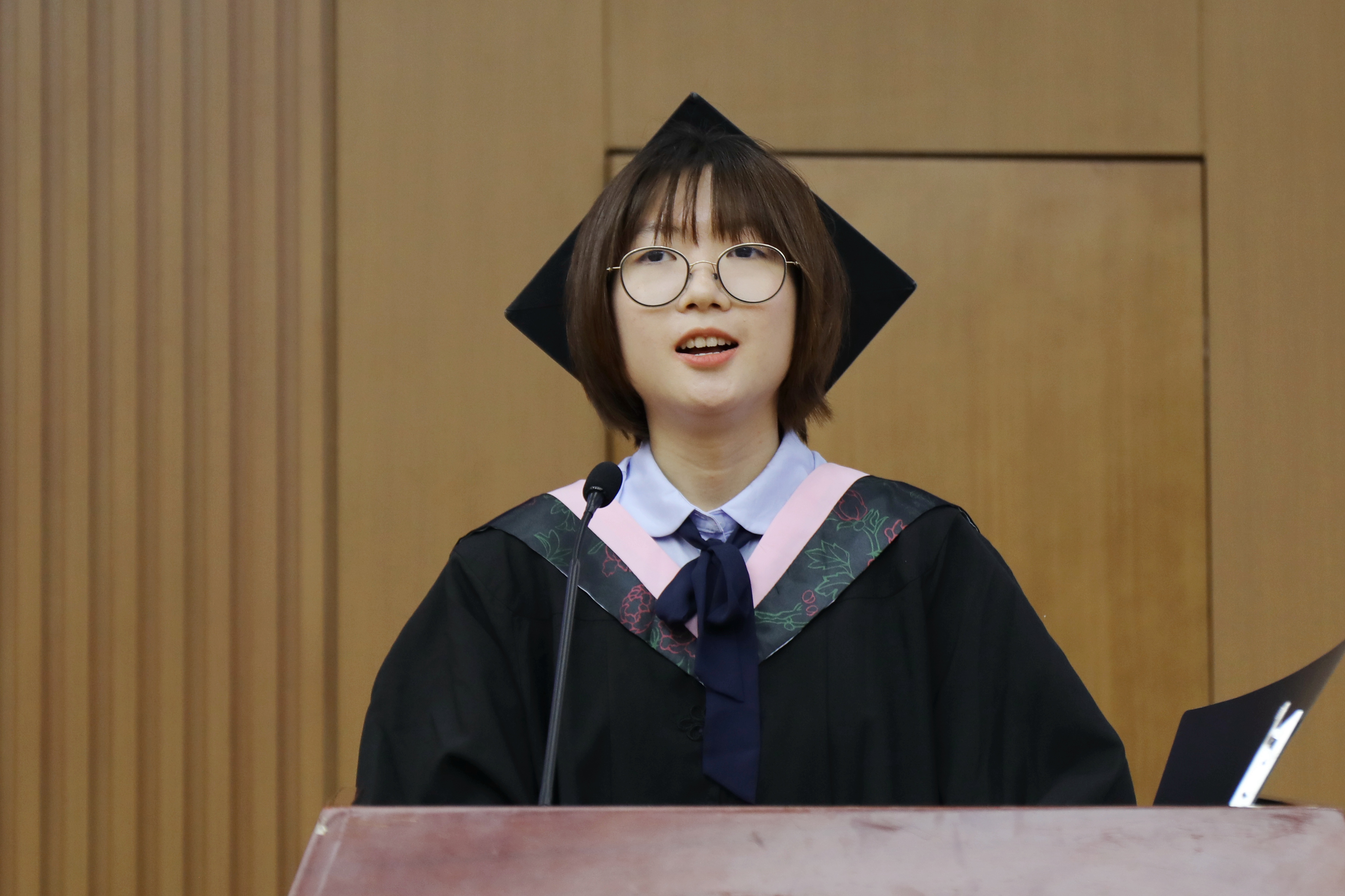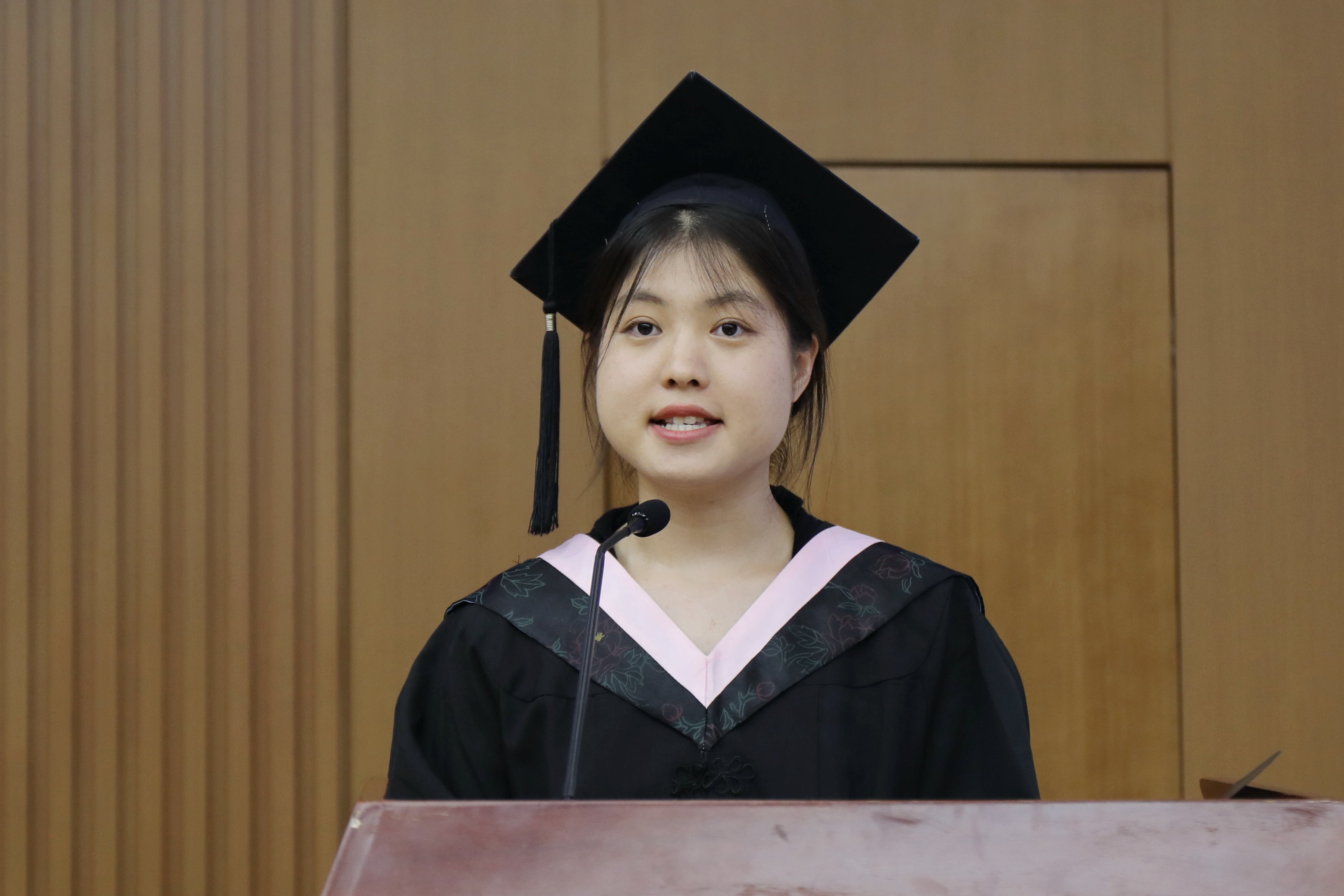 毕业生代表20级城市管理专业本科生张一铭向学院老师的贴心帮助及家人、朋友的一路相伴表示衷心感谢。她表示,在城院,学会了分析与思考,学会了理解与担当,学会了合作与追求;在城院,度过的每分每秒,经历的一点一滴,都将会是我们人生中最珍贵的回忆。她号召同学们身处时代洪流,要听从内心的召唤,永葆初心,不负韶华,在祖国和人民最需要的地方绽放绚丽之花!