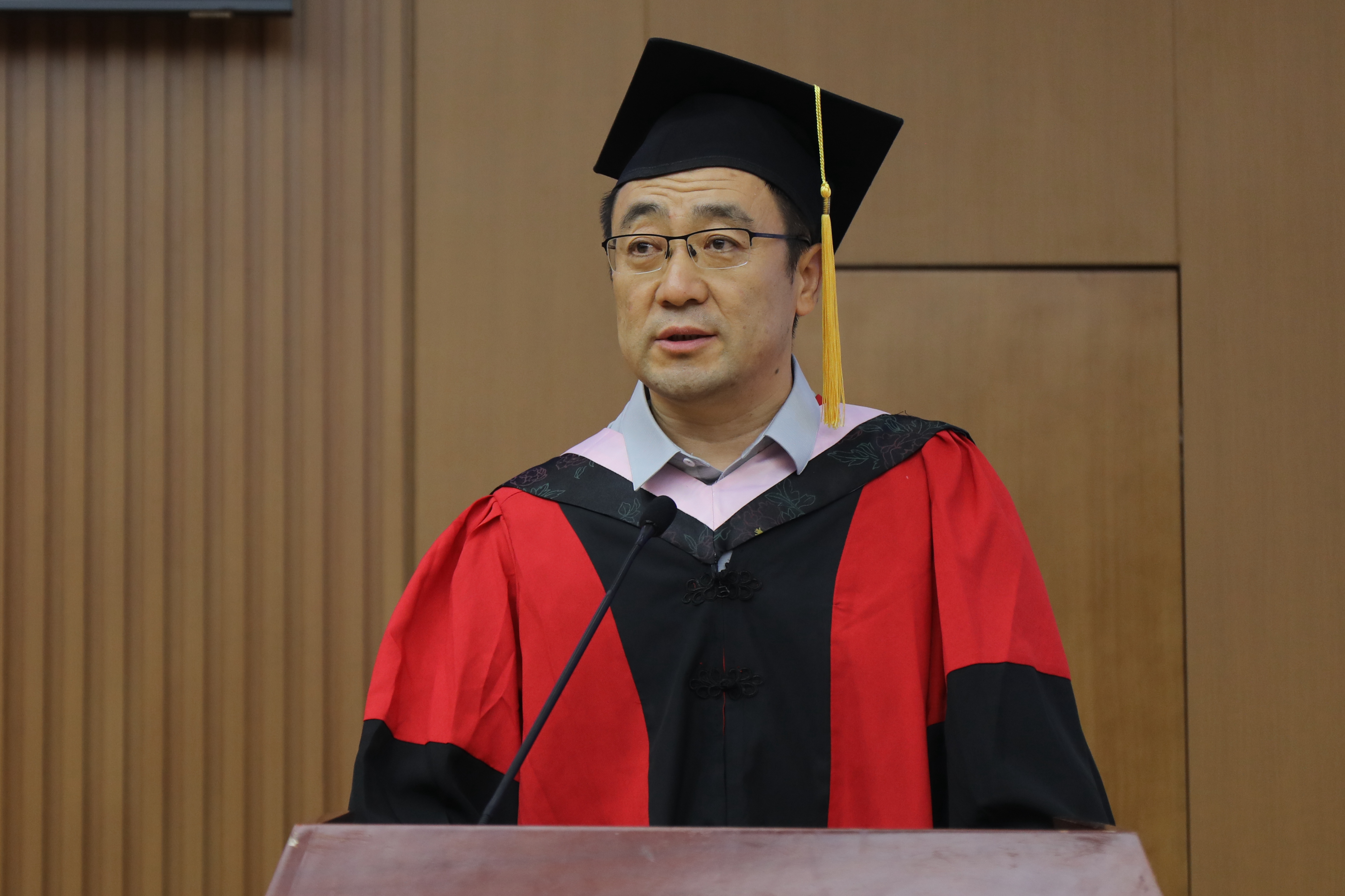 在热烈的掌声中,麻宝斌教授发表讲话。他首先代表日本三级 向顺利完成学业的同学们表示热烈祝贺,向悉心培育、关心支持同学们的导师和所有付出辛劳的教师表示衷心感谢。他指出,对于成功人们并没有一致的看法,仁者见仁,智者见智。同时,从“何为成功”和“如何成功”,将成功分为三重境界,分享了几点思考和对同学们的期待。第一重境界是个人意义上的成功,成功首先要具有稳定的价值观、强大的内核,也就是“心力”,即一个人的心理能量和精神力量。第二重境界是社会意义上的成功,要具有清晰的人生观——重新确立人与人之间的关系,社会成功不能靠个人单打独斗,而是要靠团队合作去造福社会。第三重境界是精神意义上的成功,要精神觉醒,真正认识到自己与世界的关系,明确自己的人生使命。最后他对同学们提出三点嘱托:一是要为自己书写自己的人生剧本,而不是按照别人的剧本生活;二是当面临人生关键选择时,要把“向下扎根,向上开花”作为人生方向,要把“向内成长,向外奉献”作为人生主线,要把“守住底线,不设上限”作为人生信条。三是要遵从内心的召唤,勇敢地去做真正热爱且擅长的事,长风破浪会有时,直挂云帆济沧海!