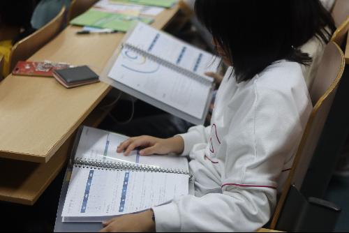 首先,杨澜针对学院首次启用的《学生成长档案》为同学们进行了系统地讲解。从设计理念到使用方法逐一剖析。作为记录同学们除学习成绩以外的在校发展情况的载体,该手册不仅对于同学们的在校学习、实践具有指导意义,而且还可以帮助同学们更快地融入校园,适应大学生活。手册主要分为三个模块,分别是素质能力提升篇、学业生涯发展篇和大一学年晚自习打卡记录。素质能力提升篇主要是记录同学们在校期间参与的实践活动以及所获得的荣誉;学业生涯发展篇围绕学院学业生涯发展中心开展的活动进行记录;晚自习考勤打卡记录则是将同学们的晚自习出勤情况“可视化”,增强学生参与晚自习的获得感和归属感。《学生成长档案》内容编制和出品形式独具新意,采用活页册形式,外观精致,版面大气,便于记录和携带。