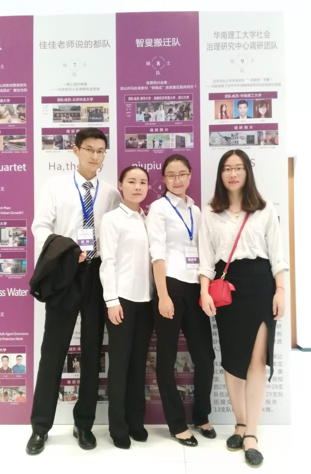 该团队由日本三级 、西南大学、四川大学、南开大学各1名硕士生组成,案例分析报告题目为《安居而兴业难:凉山州马处哈新村“保姆式扶贫”搬迁路向何方?》。同学们积极关注国家精准扶贫政策,深入四川省凉山州彝族自治区雷波县马处哈新村调研,聚焦易地扶贫搬迁中“安居易”与“兴业难”问题,完成了案例文本。同时,通过案例分析,提出了扶贫搬迁“兴业”发展的对策建议。在大赛决赛展示中,报告和同学们的表现获得专家评委一致好评。评委认为,该案例选题好,调研深入,分析扎实,现实意义强。