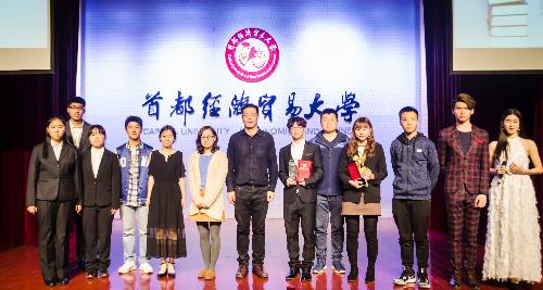 激动人心的颁奖环节。经过紧张激烈的现场展示、评委打分、观众线上投票环节,最终获得三等奖的是朱东旭、李哩莉同学、孙天智;获得二等奖的是刘轶、高萌萌;获得一等奖的是赵鹏。最佳人气奖被李岩霏摘取。杨澜、于云鹏、杨曦分别为获奖同学颁奖并合影留念。