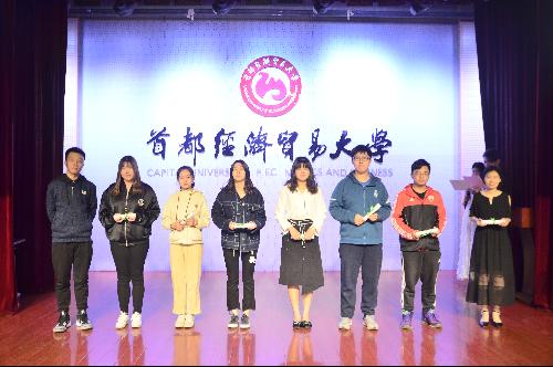 线上投票环节。现场观众的可以通过学院的“青橙部落”微信公众平台为自己心怡的选手进行投票。投票期间主办方邀请朱荩臣老师做了精彩的读书经验分享。他结合自己的学习生活经验,向同学们分享了“多读书,勤读书,读书会让人收获许多财富”的成长道理。