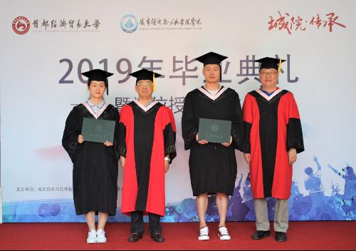 2019-07-092019年7月3日上午,在校级毕业典礼结束后,学院在城市运行与应急管理实验中心隆重举行2019年城院·传承”本科毕业生学位授予仪式。一百三十余名本科生获得学士学位。院领导与全体本科毕业生共同出席仪式。 张国山 王德起为毕业生授予学位 张国山 王德起与学生合影留念 在各班接受学位授予前,班长代表全班诉说了同学们四年美好大学生活的点滴回忆,表达了真挚的祝福,祝愿大家都能有一个美好的未来。随后,各班同学两两一组,踏上红毯,走向前方,接受张国山教授以及王德起教授的拨穗礼,正式拿到自...