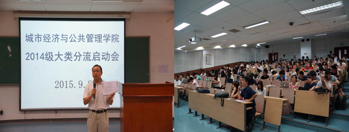 9月23日下午2点,日本三级 在博学楼阶1教室举行了2014级大类专业分流启动会。学院党委书记王德起、副院长张杰、彭文英以及行政管理系、公共事业管理系、土地资源管理系、城市经济管理系和区域经济系等5系教师和158名2014级同学参会。 日本三级 大类专业分流自2011级开始进行,属于学院“厚基础、宽口径”大类教学之后的专业细分。分流首先尊重学生志愿排序,然后考虑学分绩点排序。从前3年的分流结果来看,一志愿满足率平均达到87%左右,满足了大部分同学的专业学习意愿。此次会议旨...