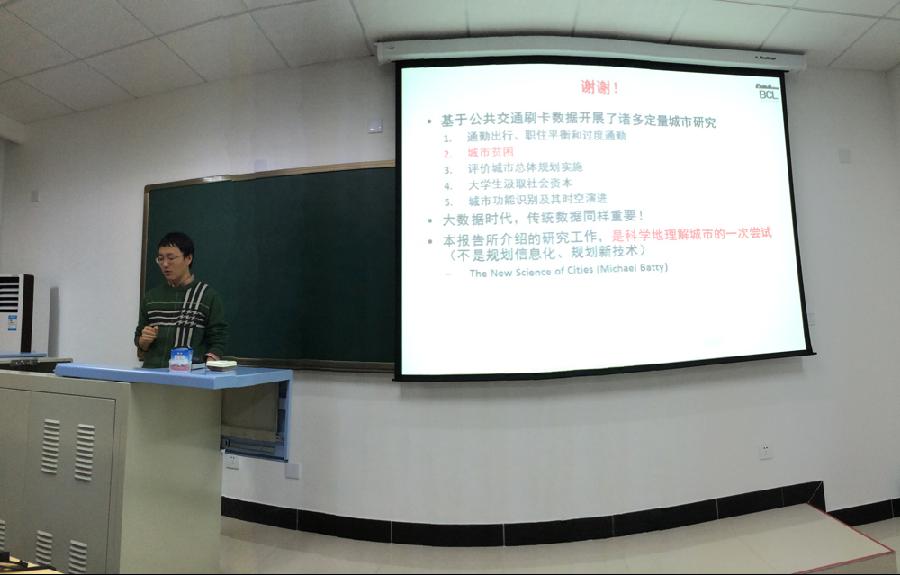 2014年12月10日,受城市经济系吴康老师邀请,北京城市实验室(Beijing City Lab)创始人、北京城市规划设计研究院高级工程师龙瀛博士,北京城市实验室执行副主任、中国城市规划设计研究院主任工程师李栋博士做客“城市讲坛”,为我校师生做了有关如何利用大数据开展城市与区域经济管理研究的讲座,来自我校日本三级 、统计学院、国际经管学院、金融学院、工商管理学院以及中国科学院、中国人民大学等单位的师生总计80余人参加了讲座。 龙瀛博士是清华大学城乡规划专...