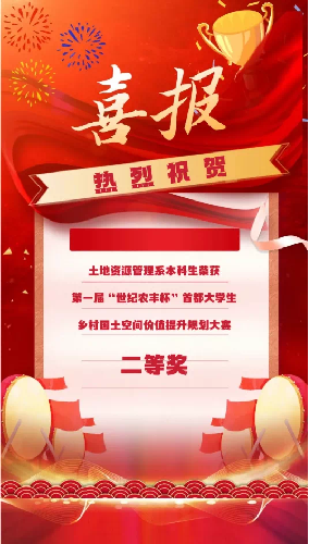 为进一步践行生态文明战略,落实党的二十大关于推进乡村振兴的要求,加快国土空间规划体系建设,着力推动高质量发展,由中国国土经济学会、北京市农村经济研究中心主办,北京市师范大学地理科学学部自然资源学院承办组织了第一届“世纪农丰杯“首都大学生乡村国土空间价值提升规划设计大赛。 本届大赛以“北京市密云区溪翁庄镇金叵罗村“为设计对象,共32组参赛作品,我校土地资源管理系设计方案的名称为“金米传乡,迎客含桃”。比赛经过初赛选拔、方案网络投票等阶段, 决赛于4月16日在北京师范大学落下帷幕...