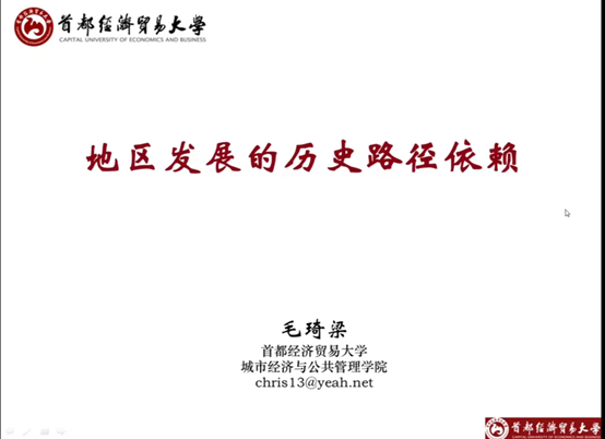 7月12日下午,城市经济管理系毛琦梁老师以“地区发展的历史路径依赖”为主题开展了一场讲座。 毛老师首先对路径依赖进行了解释,随后提出了一些路径依赖概念使用的关键问题,如研究目标、机制、来源等等。接下来,毛老师从路径依赖的微观基础与影响因素、路径依赖与“资源诅咒”困境两方面对路径依赖进行了补充讲解。 毛老师认为,自然资源禀赋、企业家精神与城市经济韧性三者之间,自然资源禀赋奠定了不同的内部结构与外部环境,如性别结构、任务复杂度等问题的产生,影响了企业家精神及城市经济韧性。毛老...