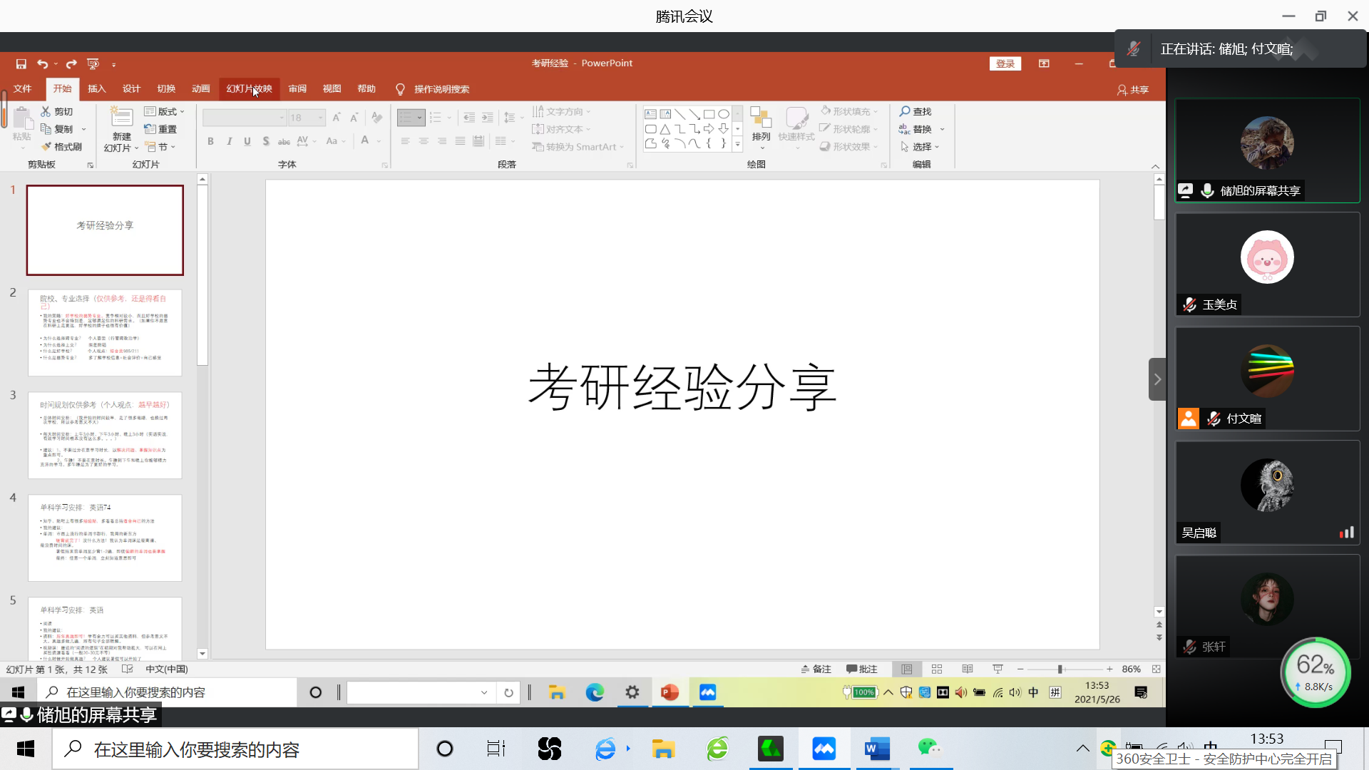 2021年5月26日中午,由日本三级 学业发展中心举办的城市青年学业发展能力提升讲座之“关于考研那些事”的讲座,在腾讯会议室如期举行。本场讲座由今年考研上岸的王雅艺、储徐和吴明桓进行主讲,围绕时间规划、收集资料、专业选择等内容与同学们进行分享,共30余位学生参加本次分享会。 首先,由王雅艺进行了分享。王雅艺主要从“如何获得考研的相关信息”、“如何准备考研科目”、“如何调整心态”三个方面进行了分享。她以自己的备考经验为例,为即将准备考研的同学们在考研的准备、科目的如何选择参考...